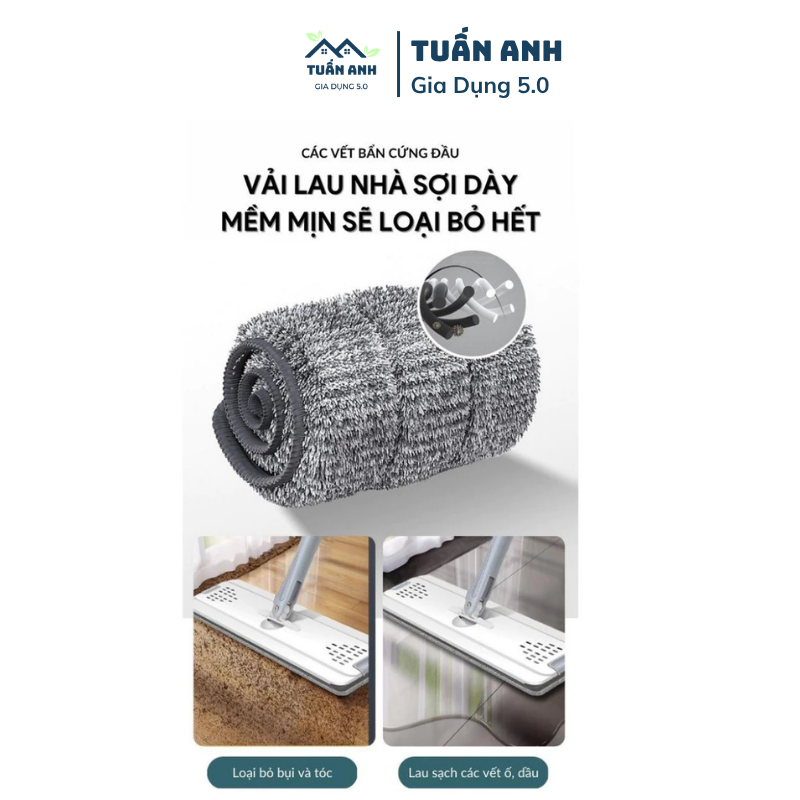 ✨ Giới thiệu sản phẩm: Bộ Cây Lau Nhà Cao Cấp Đa Năng ✨ 🌟 Tính năng nổi bật: – Thiết kế tự vắt 360 độ: Cây lau nhà thông minh này giúp bạn dễ dàng lau sạch mọi ngóc ngách mà không cần chạm tay vào bông lau. – Bông lau Microfiber cao cấp: Chất liệu sợi Microfiber tiên tiến giúp lấy sạch bụi bẩn và tóc, giảm tĩnh điện trên mặt sàn. – Thùng lau thông minh tiện lợi: Thùng lau có lỗ thoát nước tiện lợi để xả nước giặt sau khi sử dụng. Kích thước thùng lau: 21 x 18.5 x 37 cm- Thể tích thùng lau: 6 Lít Kích thước bông lau: 33×12 cm (hình chữ nhật) 🎨 Biến thể sản phẩm: – Màu xanh, 2 bông lau – Màu trắng, 3 bông lau 🧹 Thông tin chi tiết: Cây lau nhà tự vắt thông minh 360 độ là giải pháp tối ưu cho việc dọn dẹp nhà cửa. Với thiết kế gọn nhẹ, sản phẩm đi kèm thùng lau và bông lau, giúp bạn dễ dàng sử dụng ngay. Bàn lau có thể tự vắt khi nghiêng, xoay 360 độ, giúp lau sạch mọi ngóc ngách. Ngăn giặt và vắt khô riêng biệt giúp bạn không cần chạm tay vào bông lau khi giặt. Sản phẩm có sẵn các biến thể màu sắc và số lượng bông lau khác nhau để bạn lựa chọn.
