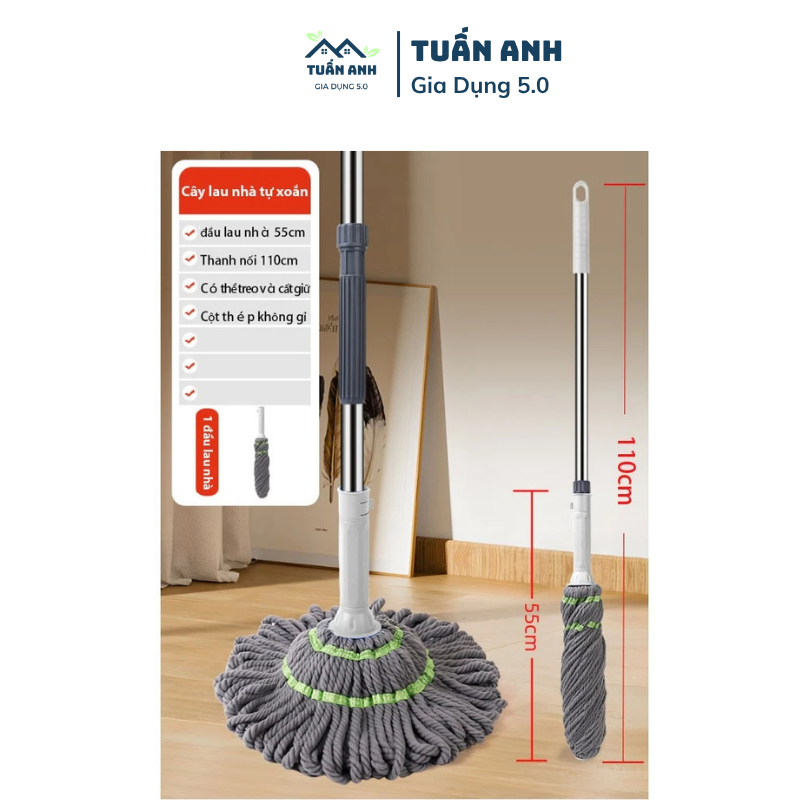 – Cây lau nhà tự xoắn có bảo hành từ nhà cung cấp.
