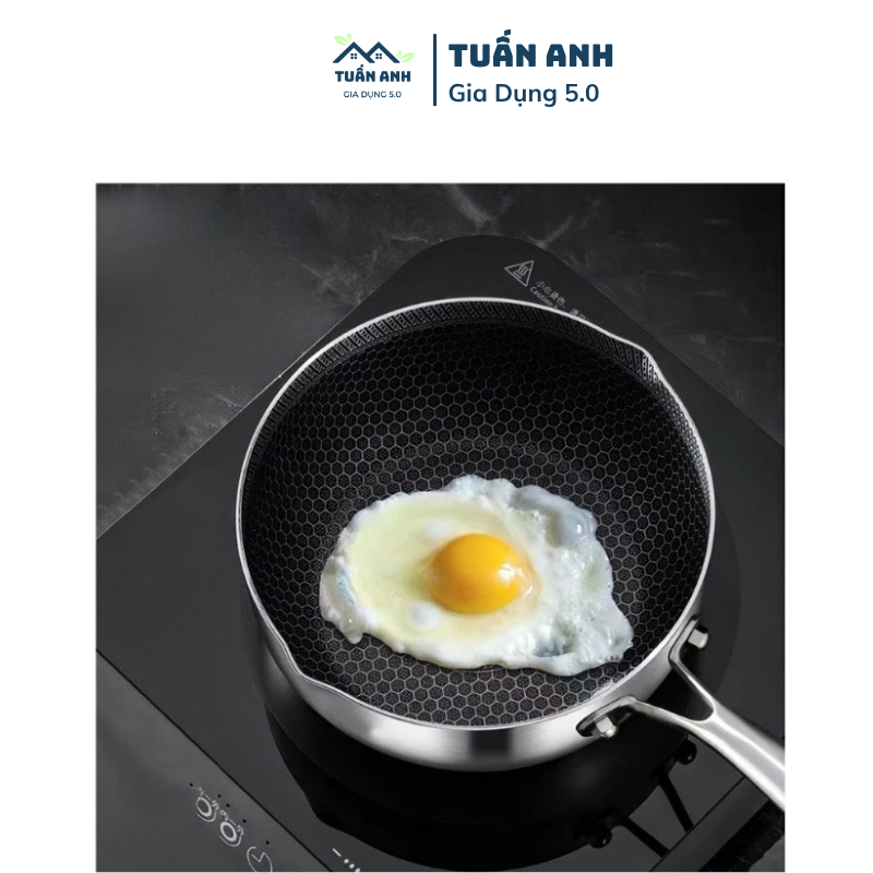 Chảo chống dính 5 lớp inox 316 công nghệ khắc laser tổ ong đáy bằng chuyên dùng để áp chảo, chiên rán. Chảo 5 lớp nên khi rán không bị phồng đáy, đế bằng bên bắt từ cực tốt!