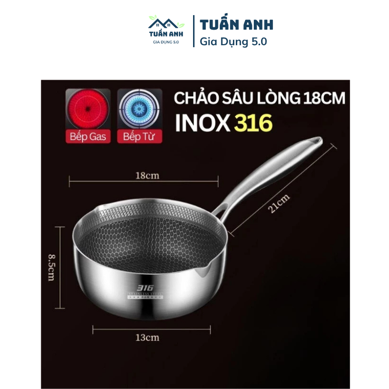 Chảo sâu lòng đáy tổ ong chống dính cao cấp đang #seo còn #135k/chảo size 18cm ạ lun ah ( không kèm nắp )