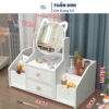 – Có thể đựng tất cả các loại mỹ phẩm đồ trang điểm như: kem nền, kem dưỡng, son và dùng như một bàn make up hiện đại