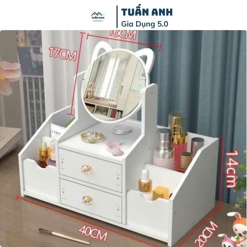 ️- Có 2 ngăn đựng tiện lợi, đa dạng kích thước kèm theo gương soi tai mèo dễ thương, đáng yêu