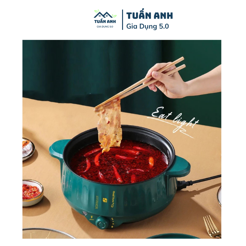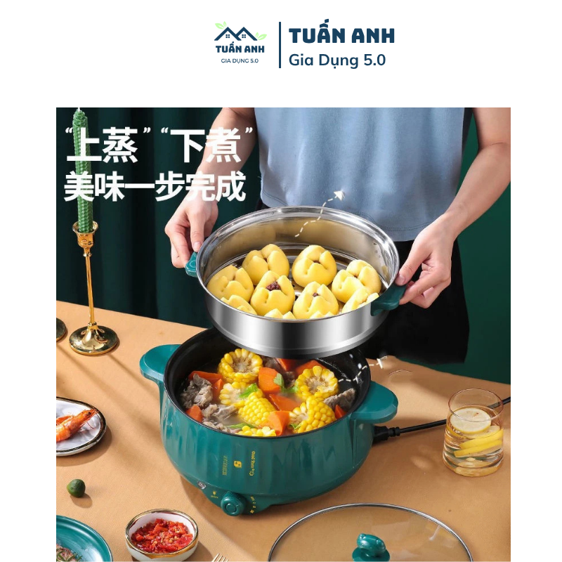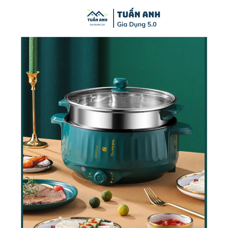 Nồi Lẩu Điện 28cm, Bếp Điện Thông Minh Công Suất Lớn 1000W Tặng Kèm Giá Hấp Inox