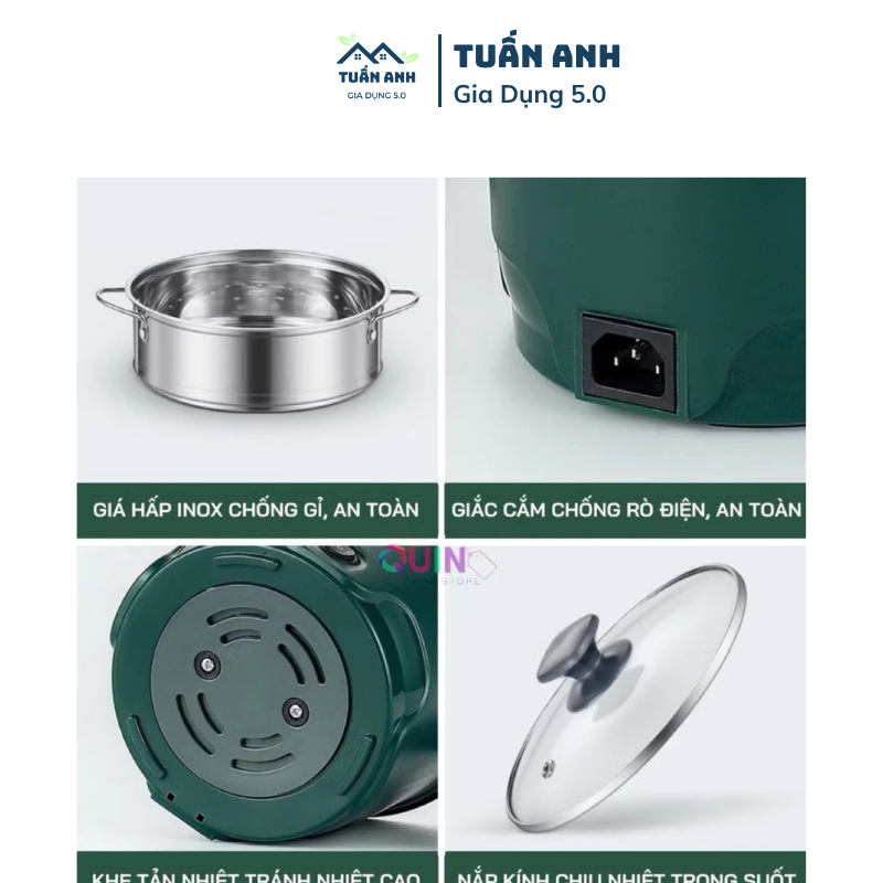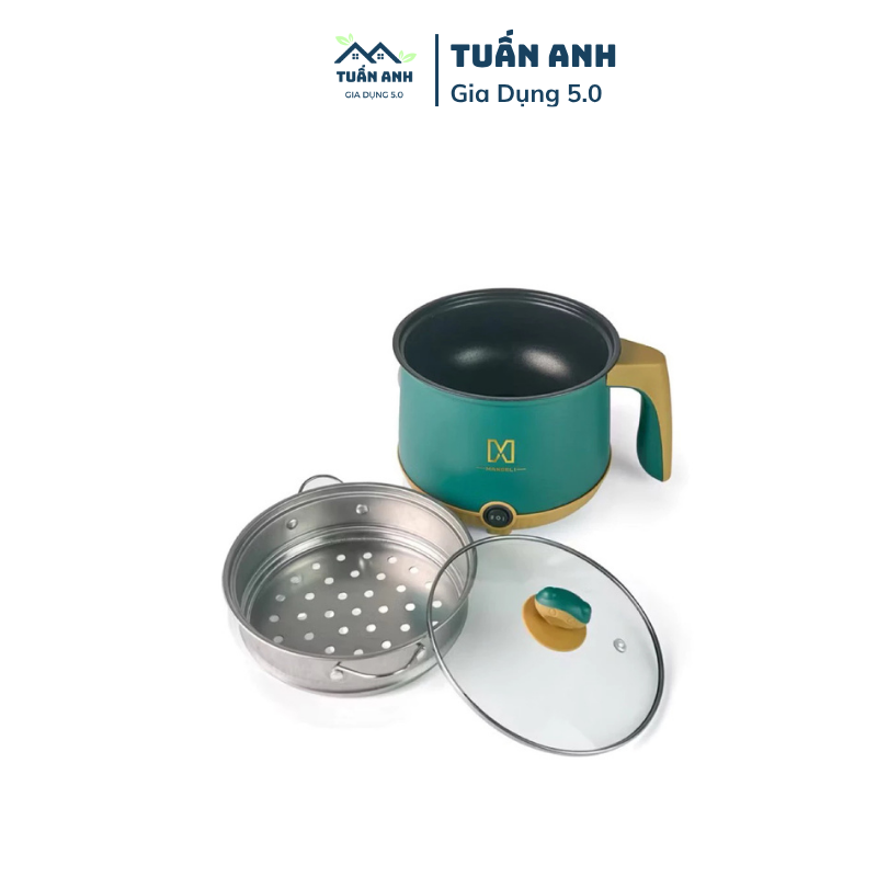 Nồi lẩu điện mini, ca nấu mỳ chống dính có thể chiên xào nấu, tặng kèm khay hấp