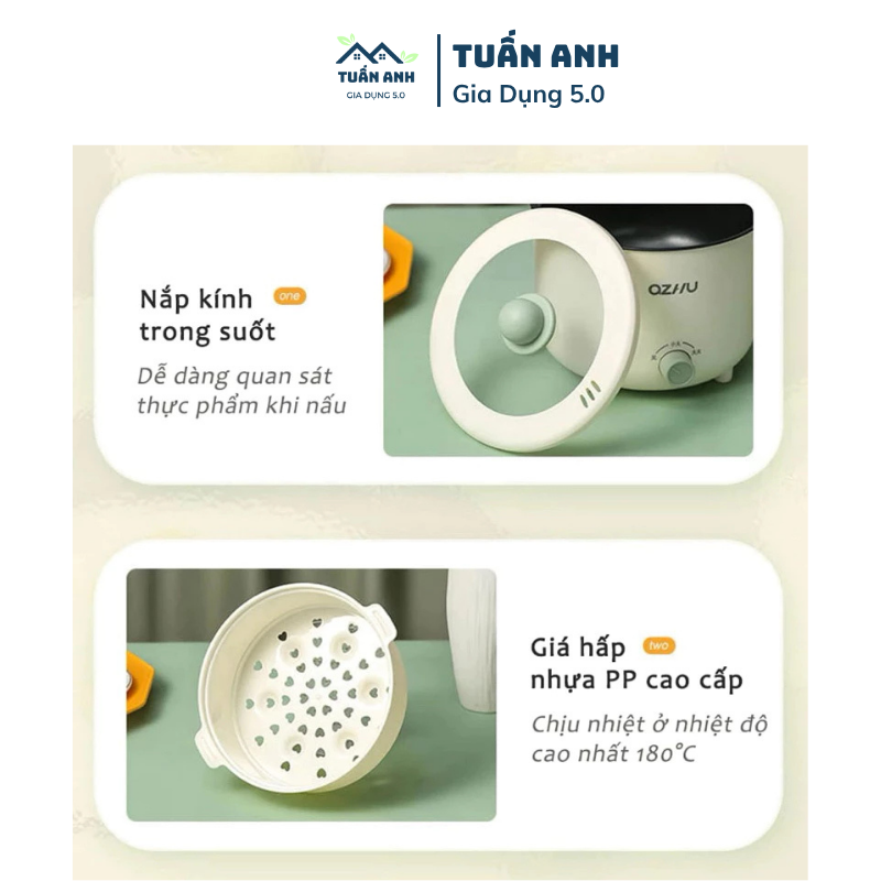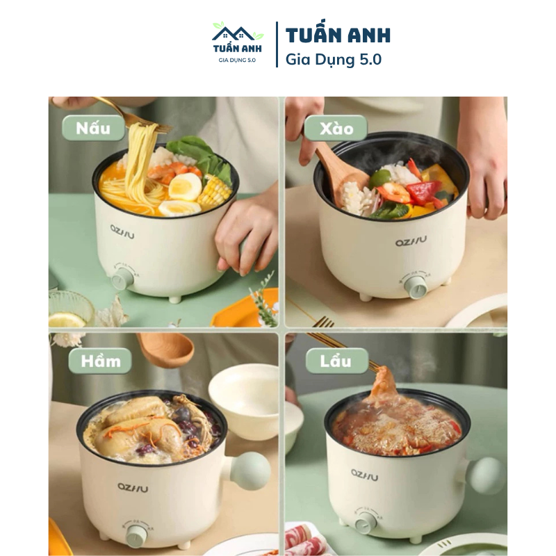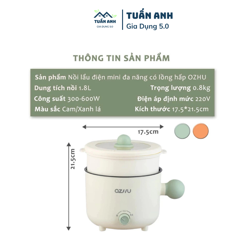 Nồi Lẩu Điện Mini OZHU 18cm 2 Nấc Nhiệt Kèm Giá Hấp Có Tay Cầm Tiện Dụng, Nồi Lẩu Mini Đa Năng 2 Tầng Cao Cấp Nồi Điện
