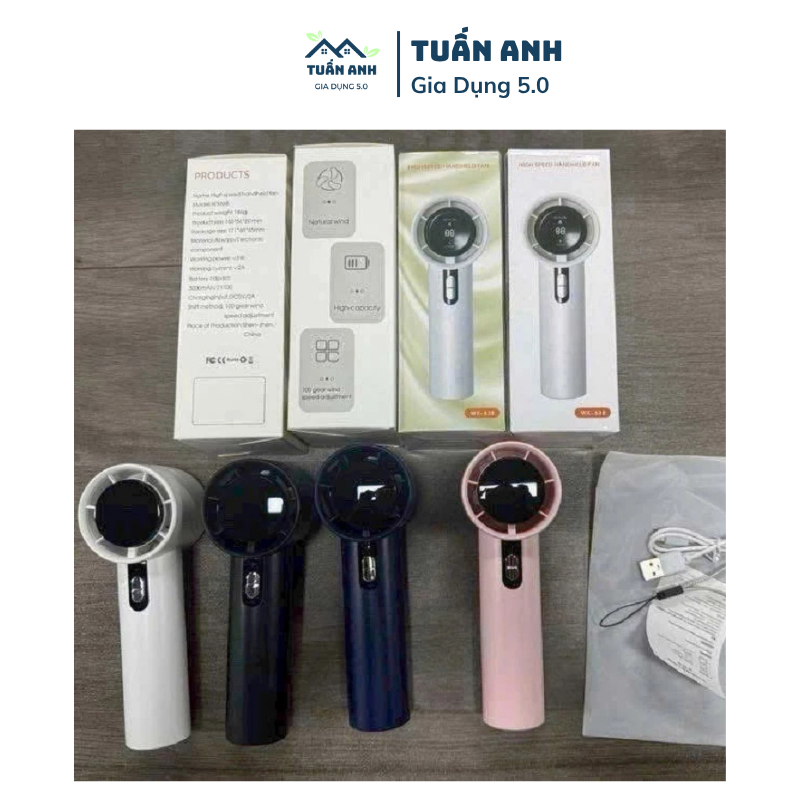 Quạt Cầm Tay Mini Động Cơ Turbo 100 Cấp Độ Gió, Nhỏ Gọn Bền Đẹp