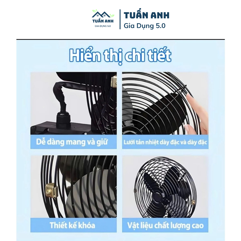 ✔ Giúp bạn di chuyển và mang theo quạt một cách thuận tiện. Quạt có thiết kế gọn nhẹ và linh hoạt, với quai cầm chắc chắn và móc treo tiện lợi. Bạn có thể đặt quạt trên bàn, treo quạt trên tường hoặc gắn quạt vào xe máy.