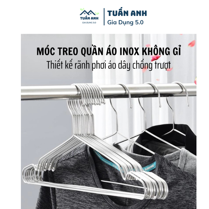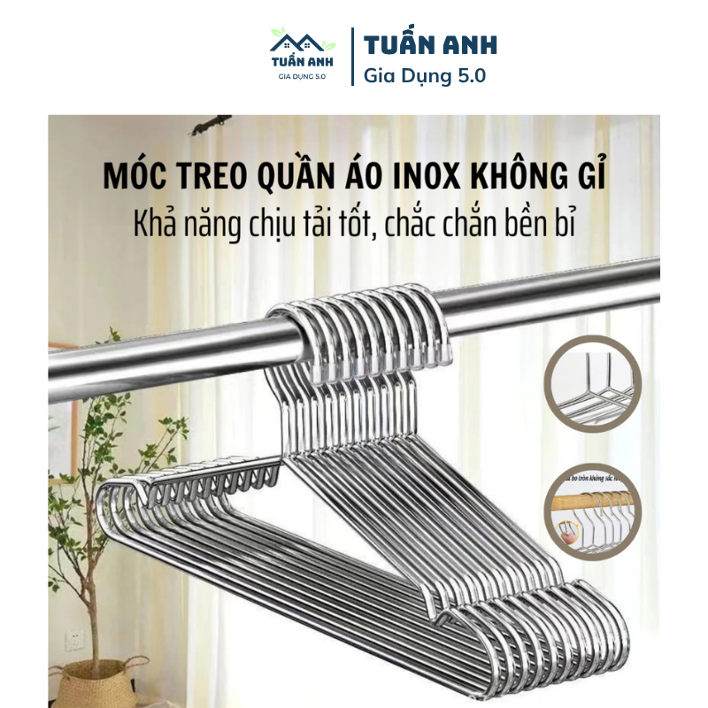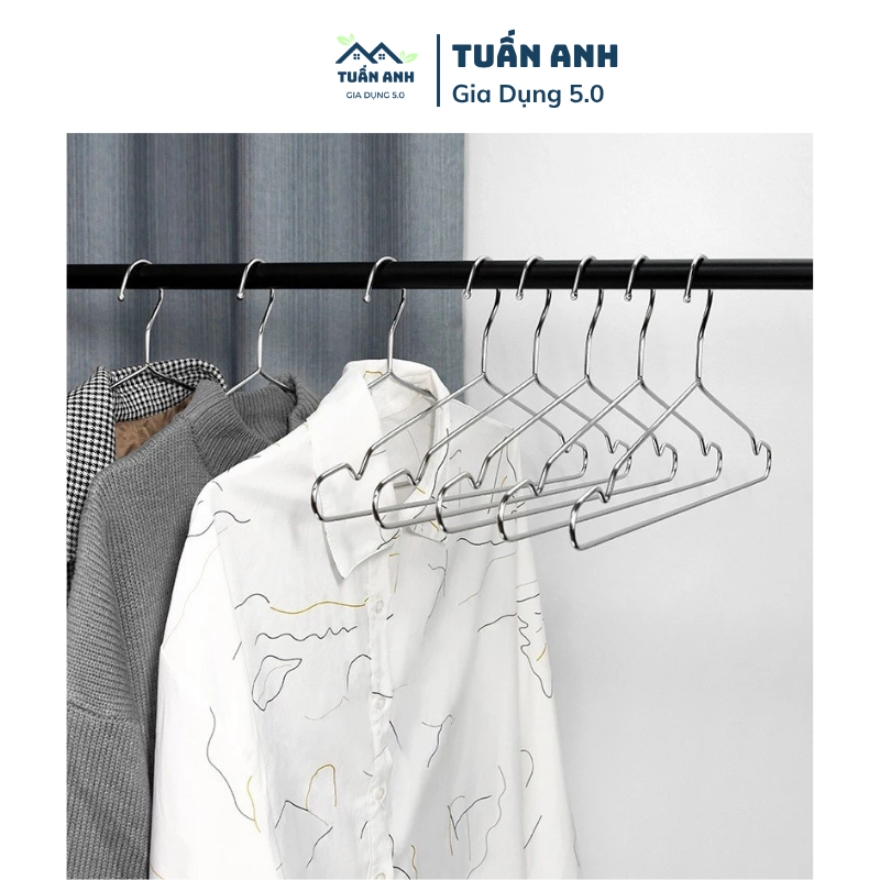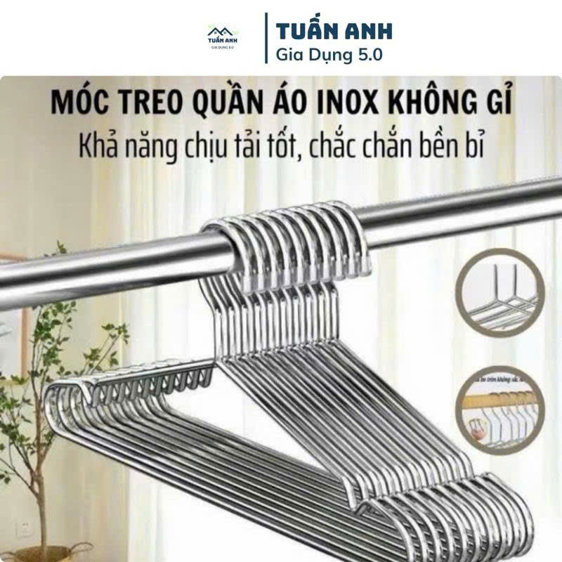Set 10 móc treo quần áo inox 304 loại dày đẹp bền 40cm