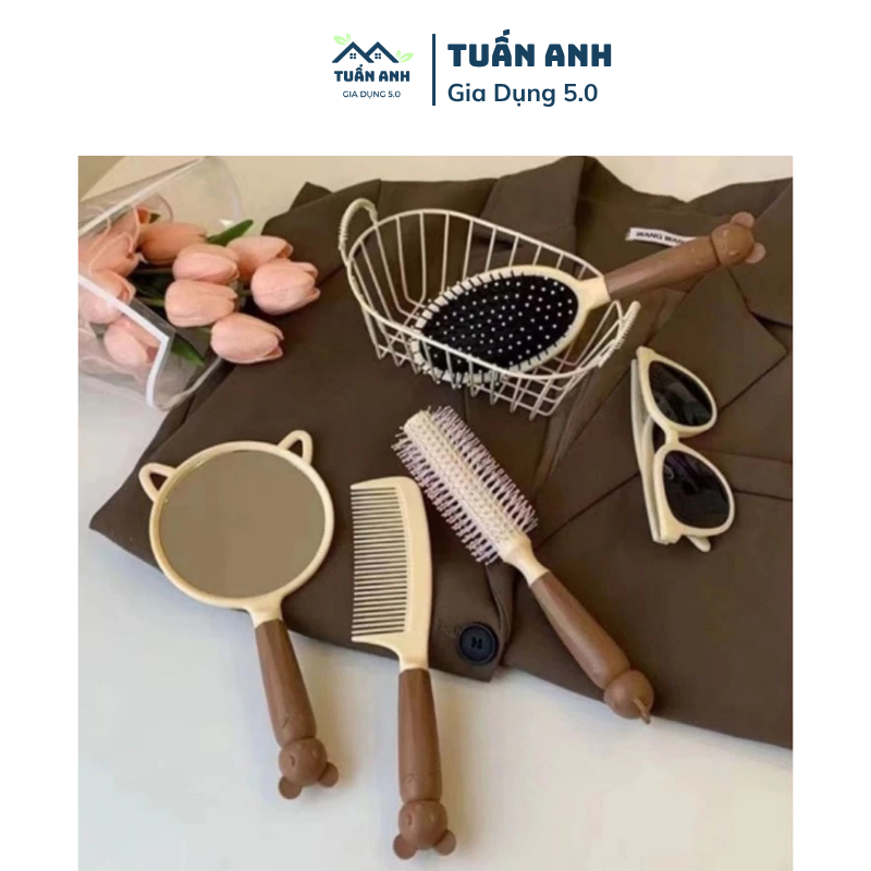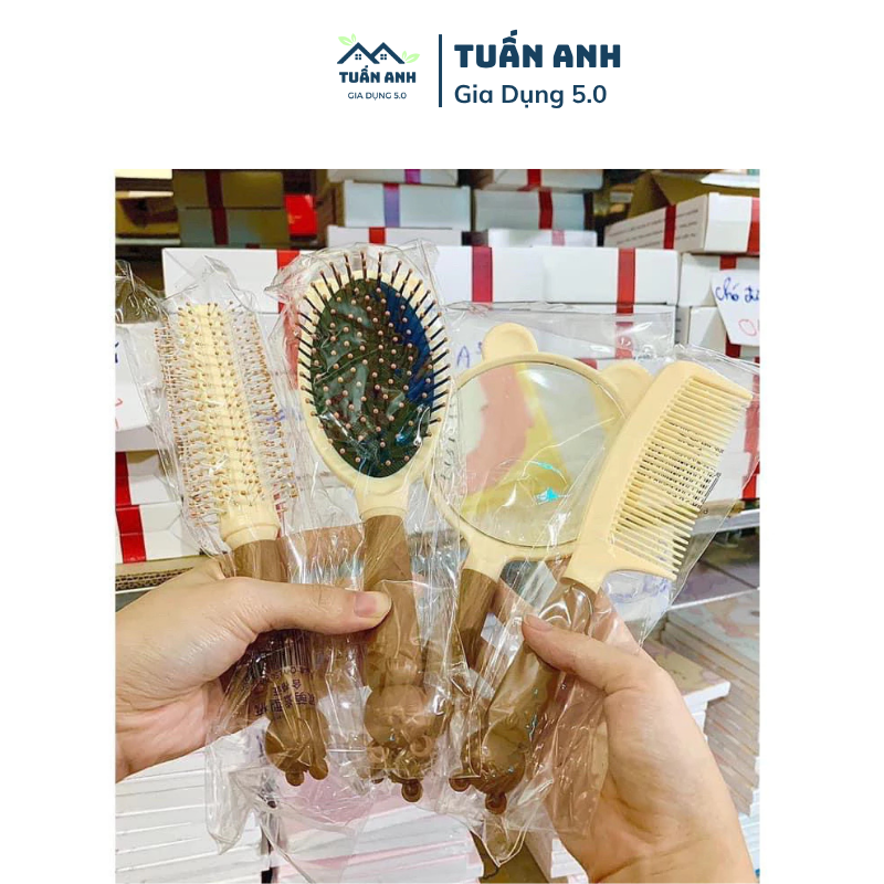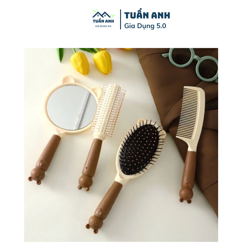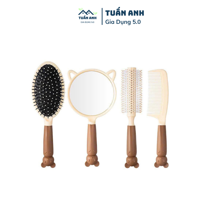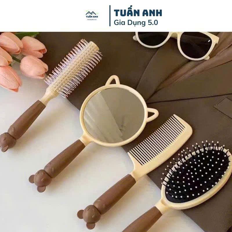 Set Gương Lược 4 Món-Bộ 4 Gương Lược Siêu Dễ Thương,Tiện Lợi,Lược Gỡ Rối,Chải Tóc,Uốn Tạo Kiểu