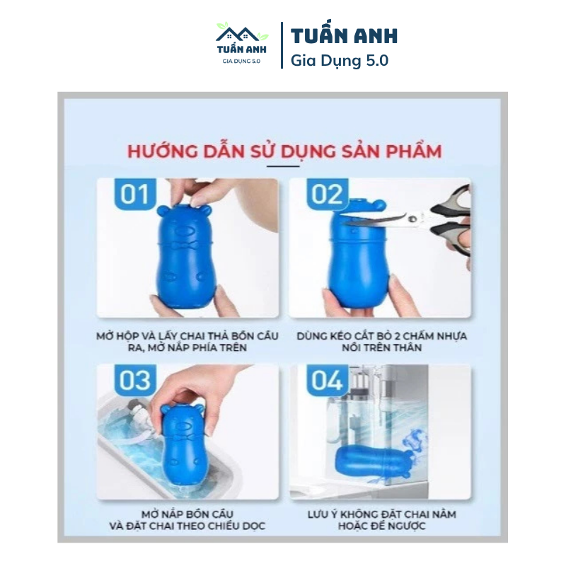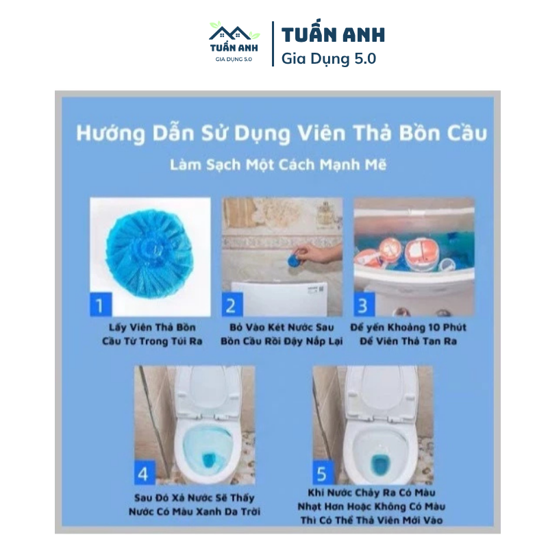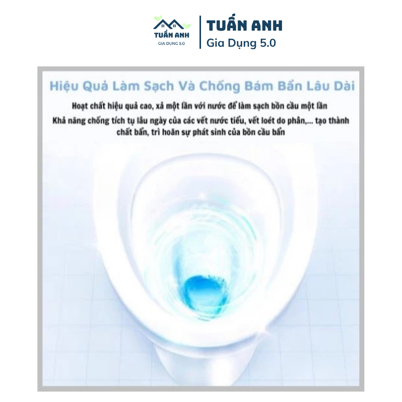 Công dụng : Tự động tẩy sạch bồn toilet, khử mùi hôi, lưu lại mùi hương dễ chịu sau khi xả nước, khi hòa tan vào nước có màu xanh mát, diệt khuẩn nguy hại bằng công nghệ sinh học tiên tiến chống bắm cặn dính vào bồn cầu và không cần dùng tay cọ rửa